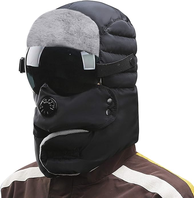Men Women Windproof Full Cover Balaclava with Glasses Mask, Winter Thermal Thick Ski Cap Camping Hunting Trapper Hat