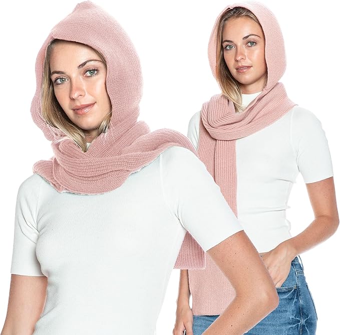 5 Colors Knitted Hooded Scarf for Women Men Winter Balaclava - Cream White, Caramel, Light Grey, Heather Greay, Black