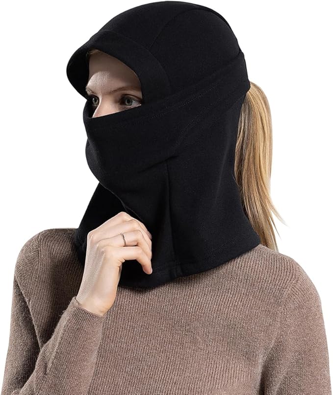 Ponytail Balaclava Ski Mask Full Face Cover Hood Winter Running Motorcycle Women