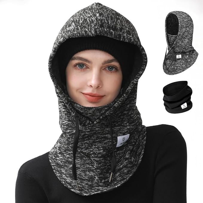 Ski Mask for Women Men, 2-in-1 Winter Balaclava Windproof Hooded Scarf Winter Sports Warm Head Cover, Full Face Cover Ski Hat